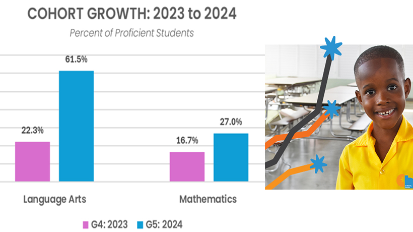 Reflecting on the broader progress, Principal Scott shared, “using baseline data from 2020-21, where just 7.2% of students were at or above grade level in reading, to now seeing 54% of students meeting that benchmark in three years, gives credence to how far we have come in a short period of time. I am very proud of what we have achieved as a team.”